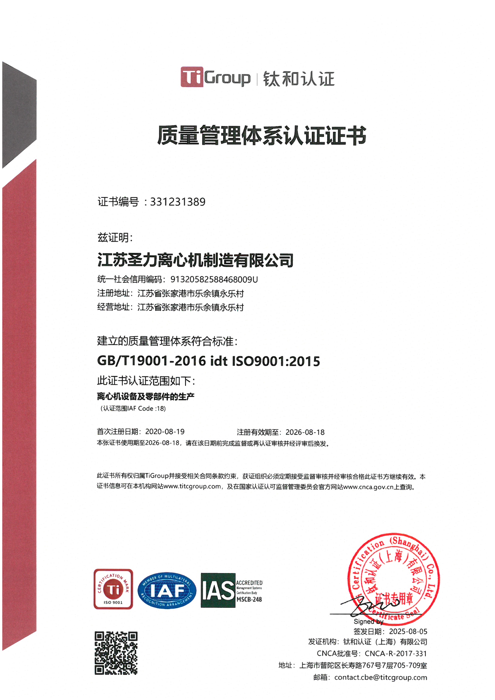 江蘇圣力離心機(jī)制造有限公司是國(guó)內(nèi)分離機(jī)械行業(yè)中主要的離心機(jī)生產(chǎn)企業(yè),對(duì)離心機(jī)的研究、設(shè)計(jì)、制造有多年的歷史,擁有齊全的設(shè)備、完善的檢測(cè)手段。公司已通過(guò)IS09000國(guó)際質(zhì)量體系認(rèn)證、ISO14001環(huán)境管理體系認(rèn)證、ISO45001:2018職業(yè)健康安全管理體系認(rèn)證和CE認(rèn)證,是江蘇省高新技術(shù)企業(yè),曾榮獲國(guó)家和地方多項(xiàng)榮譽(yù)稱號(hào)。